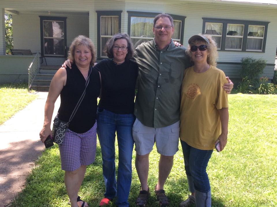 Laura, Elo, Art, and Linda in front of their grandmother’s old house.